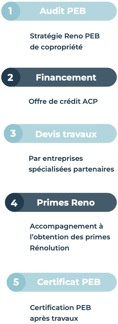 - Collection de toutes les preuves acceptables en vue de constituer le « passeport bâtiment énergétique » (devis, factures, photos, etc.)
