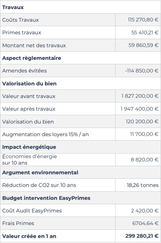 Grâce à cette gestion rigoureuse, le propriétaire a obtenu 55 000 € de primes, réduisant le coût net des travaux à 60 000 €.